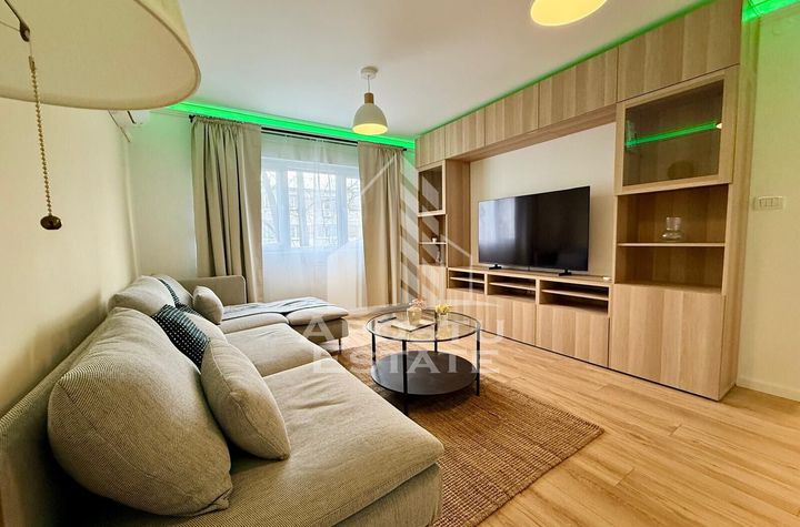 Locuinta se vinde complet mobilata si utilata, cu electrocasnice noi, in garantie, fiind gata pentru mutare imediata. Iluminatul inteligent cu banda LED ambientala in living si bucatarie contribuie la crearea unui ambient modern si placut.