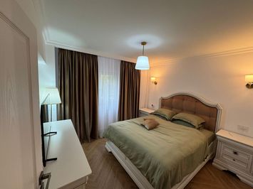Finisaje: parchet triplu stratificat, Gresie, Vopsea lavabila, Geamuri termoizolante - pvc, Dotari: aer conditionat, Lift, Interfon, Usa metalica, Iluminat exterior