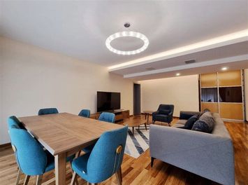 Apartamentul este mobilat modern si este compus din living spatios, bucatarie utilata si echipata complet si mobilata, dormitor matrimonial cu baie proprie, doua dormitoare secundare deservite de o baie comuna.