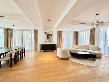 Apartamentul este amplasat la etajul 3, are suprafata totala de 381 mp, utila de 154 mp, la care se adauga 3 terase in suprafata totala de 227 mp.