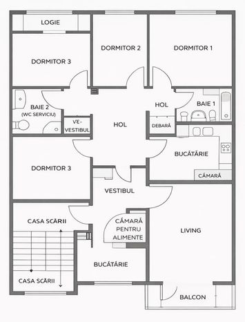 Apartamentul are 70 mp utili, este decomandat si compartimentat eficient: 3 dormitoare, sufragerie spatioasa, 2 bai, bucatarie separata si hol generos.