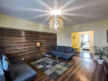 Va propun spre vanzare un apartment unic, cu un view exceptional asupra Pietei Unirii. Apartamentul cu 4 camere este situat la etajul 4, are suprafata totala de 101 mp si suprafata utila de 94 mp si este compus din living, bucatarie cu dining, 3 dormitoare, 2 bai si spatii pentru depozitare. Apartamentul este decomandat si se inchirieaza mobilat si utilat complet, asa cum este in poze.