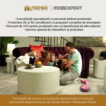 Premier Imobiliare, partener oficial Mobexpert, va propune achizitiei un apartament de 4 camere, in suprafata totala utila de 103mp, imbinand cu succes zonele destintate odihnei, studiului ori relaxarii cu petrecerea timpului in aer liber.