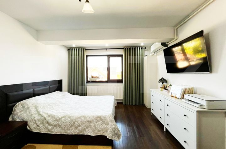 BLITZ propune spre vânzare un apartament cu 4 camere, cu o suprafață utilă de 78 mp, situat în Rediu, într-o zonă liniștită și bine conectată. Locuința are un stil minimalist, cu pereți albi și mobilier modern, creând o atmosferă curată și aerisită. Compartimentarea este practică și bine gândită: trei dormitoare, dintre care unul dispune de o zonă de birou ideală pentru lucru de acasă, al doilea beneficiază de un mic balcon privat, iar al treilea este amenajat tip dressing; bucătăria open-space se îmbină armonios cu livingul luminos și are acces la balcon. Cele două băi sunt atent finisate, una dintre ele impresionând prin detalii cochete și materiale alese cu grijă, care adaugă un plus de rafinament.