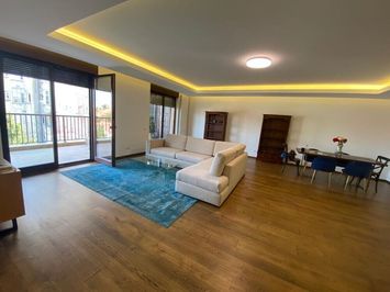 Apartamentul este compus dintr-un living spatios de 55mp cu iesire pe terasa, bucatarie mobilata si utilata, dormitor matrimonial cu baie proprie si acces pe aceiasi terasa cu livingul, doua dormitoare secundare cu iesire pe a doua terasa, deservite de o baie, doua holuri generoase cu dressinguri, camera tehnica, spatiu depozitare si grup sanitar pentru oaspeti.