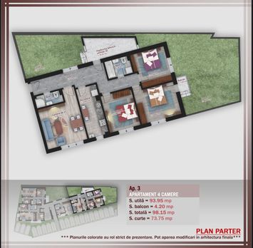 STU - SUPRAFAȚA TOTALĂ UTILĂ: 98 mp,SUPRAFAȚĂ TERASE/BALCOANE: 4 mp