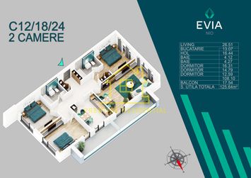 Suprafata - 108mp + 18mp balcon = total 126mp