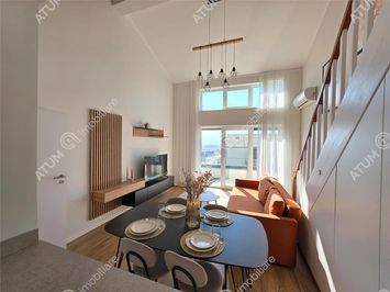 Penthouse-ul este complet mobilat si utilat cu mobilier de calitate facut pe comanda din MDF si electrocasnice incorporate ( cuptor electric, plita electrica, hota, masina de spalat vase, frigider, masina de spalat rufe, televizoare ).