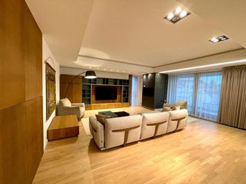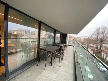 Apartamentul are o suprafata utila de 203mp si dispune de o eficienta compartimentare a spatiului, astfel: living luminos si spatios cu bucatarie deschisa si iesire pe o terasa de aproximativ 20mp cu vedere stradala, 4 dormitoare, 4 bai, un balcon, spalatorie dotata cu masina de spalat rufe si masina de uscat rufe, cu iesire pe un balcon pentru uscat rufe.