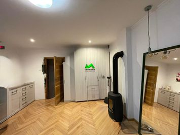 Agentia imobiliara Inovativ va propune spre vânzare un apartament la casa in Cisnadie, renovat complet, mobilat complet. Apartamentul este situat intr-o curte mare comuna, cu 5 familii unde momentan mai locuiesc doar doua. Apartamentul este compus din living generos dotat cu un șemineu modern de care va puteti bucura impreuna cu familia in zilele geroase, lavanderie dotata cu masina de spalat si masina de uscat rufe, un hol care desparte livingul de bucataria dotata cu plita electrica si tot ce mai este nevoie, 1 baie dotata cu o generoasa cabina de duș, 2 dormitoare generoase care dispun de a doua baie gata pregatita de pus gresie si faianta si obiectele sanitare.Partea de sus a apartamentului  se intinde pe o suprafață de 77 mp .Din holul principal se coboara in gradina unde se mai regasesc doua camere, momentan ele sunt amenajate pentru locuit si anume, camera mobilata cu un coltar care se transforma in pat iar in a doua camera se afla a doua bucatarie dotata cu aragaz pentru gatit. Apartamentul este dotat cu centrala proprie achiziționata anul trecut. Instalatia elecrica si sanitara au fost schimbate cu altele noi. De asemenea mai dispune de 145 mp din gradina unde a fost amenajat si un foisor ca zona de relaxare Restul de mp se  poti folosi asa cum doriti. In zona se afle multe puncte de interes public, spital,scoli,gradinite,spa, etc