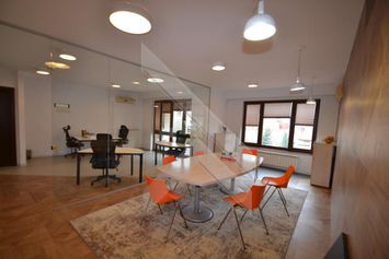 Inchiriere spatiu birouri 13 Septembrie-Marriott (Comision ZERO), cu o suprafata utila de 130 mp, decomandat, compus din: 2 zone de lucru mari cu separare de sticla in cate 2 camere fiecare, chicineta, zona de receptie la intrare, 2 grupuri sanitare, aer conditionat in fiecare camera, alarma, lift, locuri de parcare in zona. KPS0458