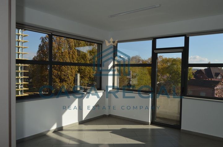 Spatiu de birouri situat la etajul 1 al unei cladiri de birouri cu regim de inaltime P+2E+M, imediat ocupabil. Spatiul este compus din 3 birouri, unul central cu acces din holul cladirii, iar din acesta este accesul la celelalte 2 spatii de birouri, in stanga si dreapta acestuia.