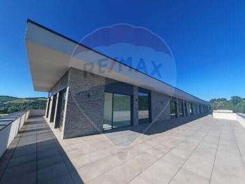 Birou disponibil spre vanzare - 347,5 mp utili + terasa panoramica privata de 317,6 mp. La cerere, suprafata poate fi extinsa prin alaturarea spatiului vecin, care dispune de 347,4 mp utili si terasa de 298.8 mp.