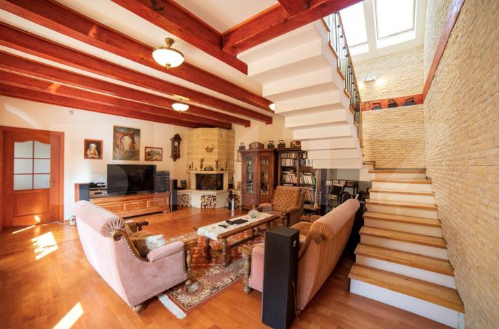 • Dormitor cu tavan casetat din lemn, grinzi originale inscripționate 1837 (recondiționate, stare excelentă)