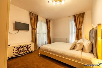- la etajul 1 si 2 sunt 10 camere structurate  ca si apartamente sau suita de apartament si living pentru familii cu copii, fiecare deservite de bai cu cabina de dus