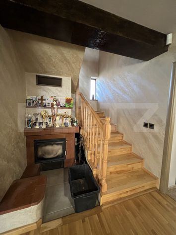 BLITZ vă propune spre vânzare o casă individuală cu piscină și priveliște panoramică spre pădure, situată într-o zonă de excepție a localității Chinteni. Vila este construită pe două niveluri, într-o zonă liniștită din Chinteni, oferind un cadru ideal pentru cei care își doresc un spațiu generos și o conexiune directă cu natura, fiind amplasată pe un teren vast de 750 mp. Suprafața utilă de 195 mp este optim compartimentată pentru a asigura confort și funcționalitate. La parter vila dispune de un living spațios, cu ferestre mari ce permit pătrunderea luminii naturale, este ideal pentru momente de relaxare și petrecerea timpului cu familia sau pentru seri de cinema la TV. Bucătăria open-space, dotată la standarde înalte este integrată cu zona de dinning, oferind un spațiu deschis și primitor pentru gătit și servit masa alături de familie sau celebrarea unor evenimente. Terasa acoperită de la parterul vilei oferă locul perfect pentru a savura cafeaua de dimineață sau admira asfințitul, beneficiind și de o saună uscată pentru relaxare. Proprietatea este amplasată într-o zonă bine conectată la 10 minute de Cluj-Napoca, pe o stradă privată, asigurând acces facil către facilități și infrastructură. Cele trei dormitoare de la etaj sunt confortabile și luminoase, beneficiind de o baie complet utilată, modernă și funcțională. Accesul la etaj se face prin intermediul unei scări elegante din lemn, ce adaugă un plus de rafinament interiorului, în ton cu parchetul din lemn masiv de stejar în stare excepțională.