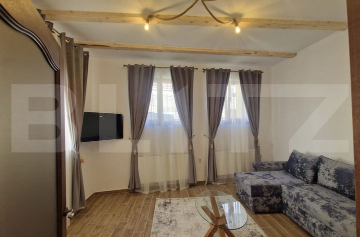 Blitz ofera spre inchiriere o casă modernă și primitoare situată în zona Șchei din Brașov, una dintre cele mai apreciate și liniștite zone ale orașului. Proprietatea beneficiază de acces facil cu mașina și este poziționată la doar câțiva metri de stația de autobuz, oferind conexiuni rapide către principalele puncte de interes. Locuința este compartimentată eficient și dispune de 2 camere, un living spațios open-space cu bucătăria complet utilată, baie modernă și o curte mică, dar cocheta, perfectă pentru relaxare.