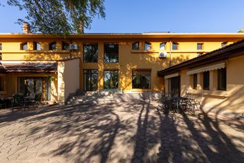 Clădirea principală, de 1.018 mp, este proiectată cu un simț excelent al proporțiilor și al funcționalității. Structurată în două unități independente, fiecare parte include un parter complet – living, dining, bucătărie, cămară, dormitor și baie – și un etaj cu trei dormitoare și două băi. Spațiile sunt luminoase, bine definite și permit o utilizare flexibilă: două familii, locuire + activitate profesională sau orice variantă mixtă.