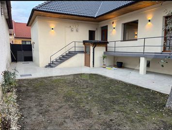 Blitz Imobiliare va propune spre inchiriere casa individuala cu gradina proprie intr-o zona centrala, la 10 minute de AFI Mall, compusa din: 2 dormitoare cu amplasament stradal (1 dormitor nemobilat), bucatarie si living open space mobilate si utilate complet, o baie amenajata modern, camera tehnica si terasa. Suprafata utila de 100mp si curte de 450 mp amenajata cu gazon si alei pavate. La demisolul casei functioneaza o firma si proprietatea este disponibila incepand cu 1 decembrie. Nu se accepta animale de companie. Va asteptam cu drag la vizionare!