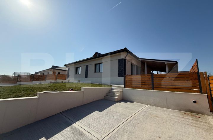 Concepută pe un singur nivel pentru a maximiza funcționalitatea și accesibilitatea, această locuință oferă un spațiu generos și o compartimentare inteligentă, ideală pentru o familie contemporană. Interiorul este compus dintr-un living spațios, o bucătărie generoasă cu zonă de luat masa, un dormitor matrimonial elegant cu baie proprie și dressing, alături de două camere versatile, perfecte pentru copii sau birou, deservite de o baie secundară.