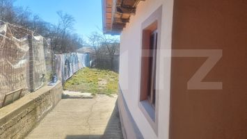 Casa are bucatarie,3 camere,terasa si compartiment dedicat pentru constructia baii,care nu este inca gata.Casa este placata interior cu rigips,anvelopata pe exterior cu polistiren de 5 cm,dat cu glet si zugravit.Podul este de lemn pe grinzi placat cu rigips.Casa se vinde mobilata,utilata pentru mutare.Pe teren se afla pomi fructiferi tineri si o treime din teren este cultivata cu vita de vie.Zona este linistita ,in spatele casei este padure iar in partea din fata are iesire la sfalt la strada cu trafic redus.