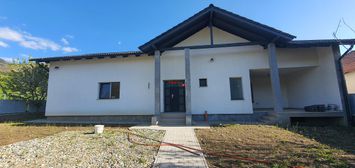 va propune spre vanzare o casa individuala in comuna Metes la 10 km de Alba Iulia, avand 3 camere, 2 dormitoare, 2 bai, bucatarie cu living open-space, camara, terasa, pivnita. Suprafata totala construita a casei este de 144 mp si suprafata teren 450 mp. Casa are structura din BCA, este construita in anul 2022, geamuri termopan Salamander, fosa septica, apa si curentul bransate. La mansarda exista posibilitatea de compartimentare in 2 dormitoare. Pentru incalzire se poate face semineu. Pretul este usor discutabil, proprietarul accepta credit. ID intern: 9281.