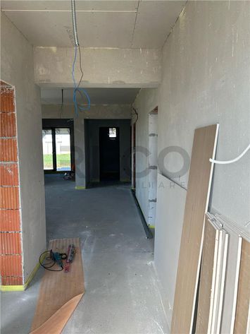 Incalzirea se face prin pardoseala, dispune de geamuri tripan, si o curte generoasa..Izolatia este cu polistiren de 10 eps80. Tavanele cu spuma si rigips.