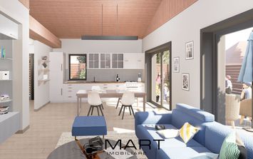 Compartimentare: Living open-space + bucătărie – 33,15 mp, 2 dormitoare de 14,32 mp fiecare, Baie complet utilată. Hol, vestibul, spațiu de depozitare.
