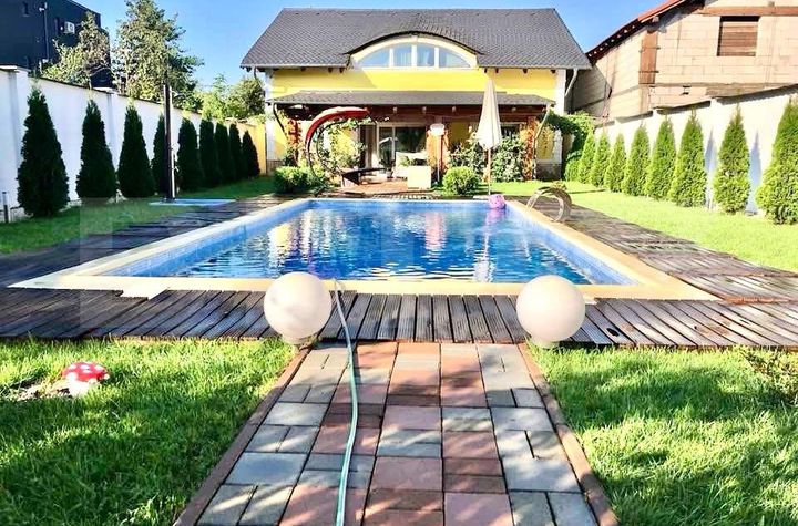 Casa beneficiază de încălzire în pardoseală, sistem de alarmă și supraveghere video pentru confort și siguranță maximă. În curte, veți găsi o piscină climatizată de 36 mp și o terasă de 50 mp, perfecte pentru momente de relaxare.