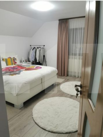 Imobilul se vinde semimobilat și beneficiază de finisaje de calitate: tâmplărie PVC, tencuială decorativă granulară rezistentă la apă, acoperiș din țiglă metalică, scări și balustrade din lemn masiv, iar la intrare se află o terasă cochetă, perfectă pentru relaxare. Proprietatea este ideală pentru locuire imediată, oferind intimitate, confort și acces rapid către