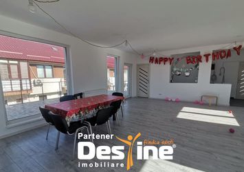 Vilă cu 4 camere, amplasată pe un teren de 562 mp, potrivită atât pentru locuință, cât și pentru activități comerciale sau evenimente. Proprietatea dispune de spații generoase, terase ample și locuri de parcare în curte.