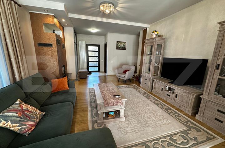 Locuința are o suprafață de 120 mp și este compartimentată eficient în 3 dormitoare, 2 băi și un living spațios și luminos, dotat cu șemineu, perfect pentru momentele petrecute alături de cei dragi. Unul dintre dormitoare este amenajat în prezent ca birou, fiind ideal pentru activități remote sau studiu. Proprietatea dispune de aer condiționat, asigurând confortul termic pe tot parcursul anului.