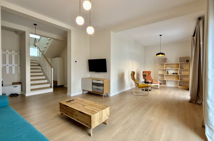La parter regăsim livingul luminos, bucătăria separată complet utilată și o baie. Etajul este dedicat zonei private și include 3 dormitoare și încă două băi, asigurând confort și intimitate pentru întreaga familie.