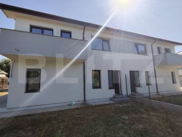 Partea din dreapta a acestui duplex este vandut deja unei familii de tineri, iar pentru cealaltă parte, care nu este încă finalizata, exista optiunea prin care viitorul proprietar isi poate alege materialele pentru finisajul interior și terasa ( gresie, faianta, parchet