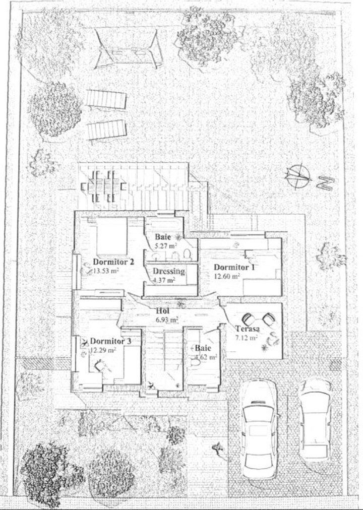 Facilități Suplimentare: Proprietatea include trei locuri de parcare - un garaj și două locuri exterioare, asigurând confort și accesibilitate pentru familia dumneavoastră. De asemenea, beneficiați de o curte frumos amenajată și o terasă spațioasă, perfecte pentru petrecerea timpului în aer liber și pentru activități sociale.