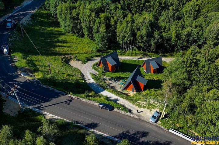 propune spre vanzare 2 unitati individuale tip A Frame situate in zona pitoreasca Moieciu de Jos, Brasov, intr-un cadru natural spectaculos, cu privelisti asupra muntilor si a imprejurimilor. Proprietatea se afla pe un teren generos de 2500 mp, cu curte individuala si spatiu liber in proprietate, oferind atat confort si intimitate, cat si posibilitatea de a petrece timp in aer liber intr-un decor natural deosebit.