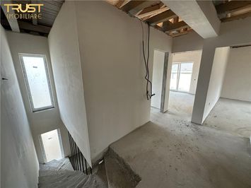 Urcand scarile, ajungem la etaj, unde sunt dispuse trei dormitoare, fiecare oferind intimitate si confort. Dormitoarele sunt suficient de mari pentru a acomoda piese de mobilier esentiale si pentru a oferi fiecarui membru al familiei un spatiu personal. Dressingul integrat este un avantaj suplimentar, oferind spatiu de depozitare amplu.