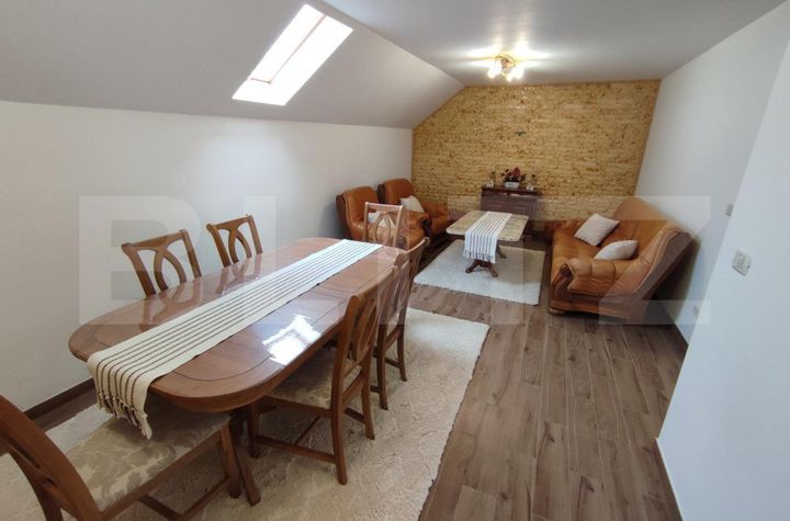 Mansarda reprezintă momentan partea locuibilă a casei și este amenajată cu atenție și rafinament. Cu trei dormitoare spațioase, o bucătărie modernă, o baie elegantă, un living generos cu zona de dinning, hol și un spațiu de depozitare sub scări, vă veți simți cu siguranță ca acasă aici. Încălzirea prin pardoseală și centrala pe lemne asigura confortul termic în această locuință. De asemenea, beneficiind de apă curentă de la fântâna din curte, prin intermediul hidroforului, veți avea mereu acces la resursele necesare pentru a vă bucura de confortul și funcționalitatea casei.