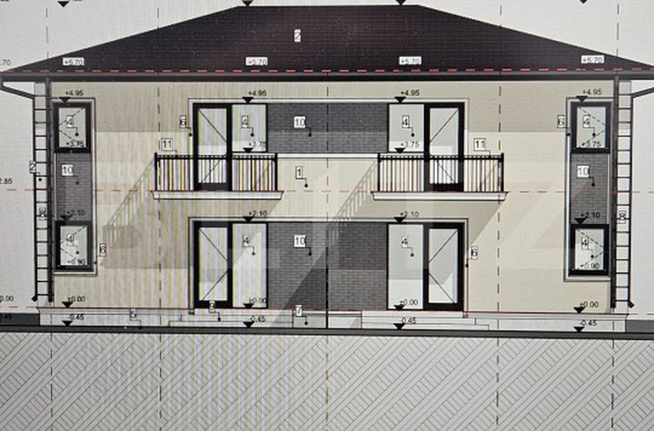 Proprietatea se desfasoara pe o suprafata utila de 105 mp si este pozitionata pe un teren cu suprafata de 460 mp.