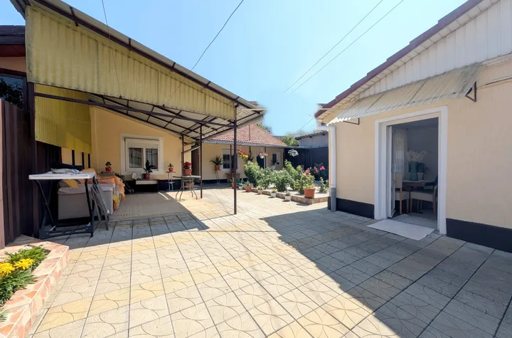 O gospodarie ingrijita pana la ultimul detaliu Totul este gata de utilizat: ai o curte pavata impecabila, strajuita de trandafiri, si o gradina de zarzavaturi productiva cu put forat propriu. Casa este complet racordata la gaz, are centrala proprie, geamuri termopan si finisaje (parchet, gresie, faianta), fiind intretinuta cu o dragoste rar intalnita.