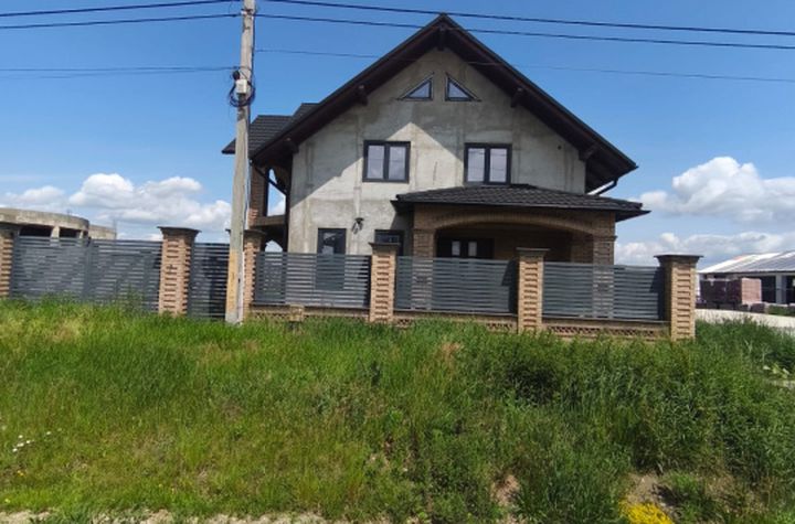 Întreaga proprietate este împrejmuită cu un gard solid din beton, cu stâlpi din cărămidă aparentă, asigurând intimitate și securitate.