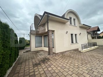 Casa este dotata si mobilata,curte si terasa foarte mari,3 dormitoare,dressing,bucatarie si living open space,birou cu biblioteca la demisol,pivnita,totul amenajat in stil clasic.