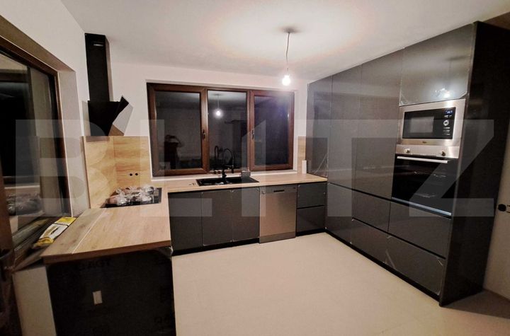 Imobilul este locuibil, parțial mobilat, cu bucătăria complet echipată cu electrocasnice moderne (mașină de spălat vase, cuptor, cuptor cu microunde).