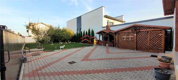 - este amenajat cu gard, pavaj de calitate superioara, gazon, flori si pomi fructiferi;