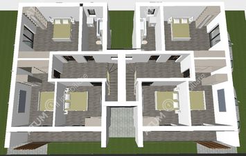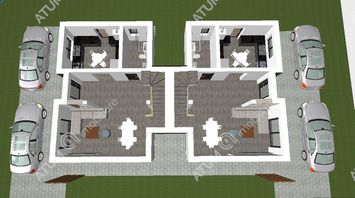 Pe terenul de 200 mp este pozitionata casa care are amprenta de 59 mp iar curtea libera de 141 mp este desfasurata pe cele 3 laturi ale casei. Casa este retrasa cu aproximativ 1,5 m de la limita de proprietate astfel creeanduse o zona decorativa cu flori si arbusti decorativi. In partea laterala este zona de parcare unde se pot parca 2 autotirisme iar in spatele casei, zona de relaxare unde poate fi amenajata o filigorie cu grill.