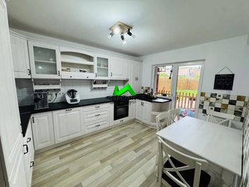 Aceasta beneficiaza de o curte libera  de 67mp+ terasa acoperita 25mp si are un  loc de parcare în fața casei.Casa se afla intr o zona linistita si este la cateva minute distanta de magazinele mari din apropiere.