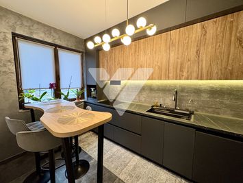 - La parter: hol de acces generos cu loc de luat masa si acces la terasa, living, bucatarie separata, baie cu geam, spatiu tehnic si un spatiu pentru depozitare