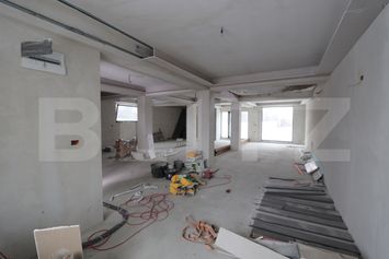 La parter avem un open-space cu o suprafață generoasă de 106 m.p. care poate fi și compartimentat și o baie de 7,3 m.p..