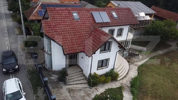 In zona de parter a casei regasim un living foarte spatios, hol, baie, bucatarie cu loc de luat masa si o terasa exterioara. Accesul in zona de etaj se face pe o scara foarte incapatoare si la etaj avem hol trei dormitoare, baie si terasa exterioara, cu vedere spre partea de gradina. Partea de mansarda este finalizata, dar este inca nemobiliata. Restul casei este mobilata si utiliata in totalitate. La demisol avem beci si camera tehnica.