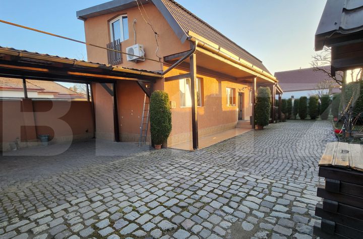 Accesul în curte se face pe o zonă pavată, care oferă spațiu generos pentru parcarea autoturismelor.